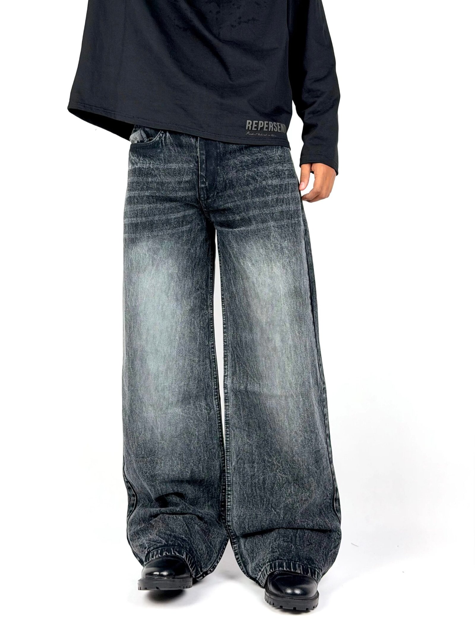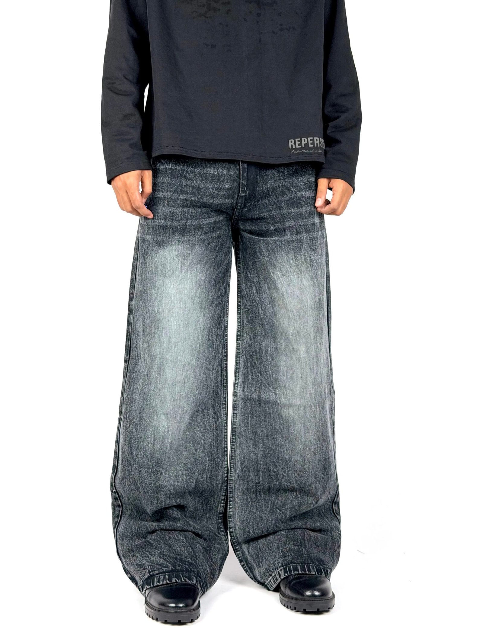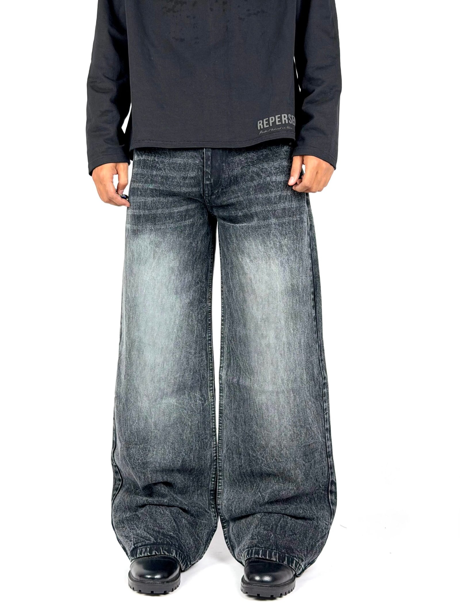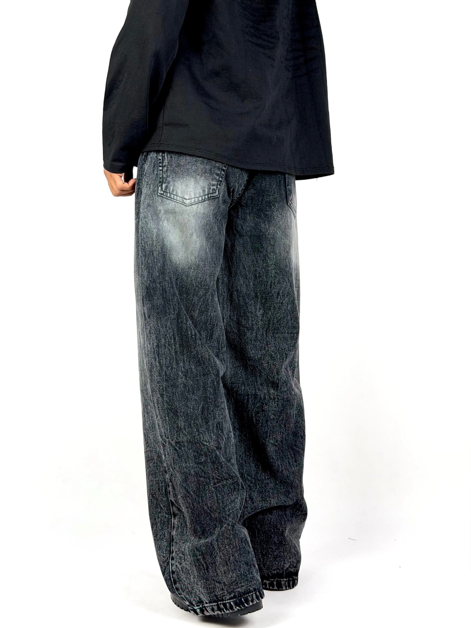 Carbon blends textured black fading with a relaxed wide-leg silhouette for a strong yet effortless street look. Designed for comfort and movement, this pair offers soft structure, vintage character, and everyday versatility.