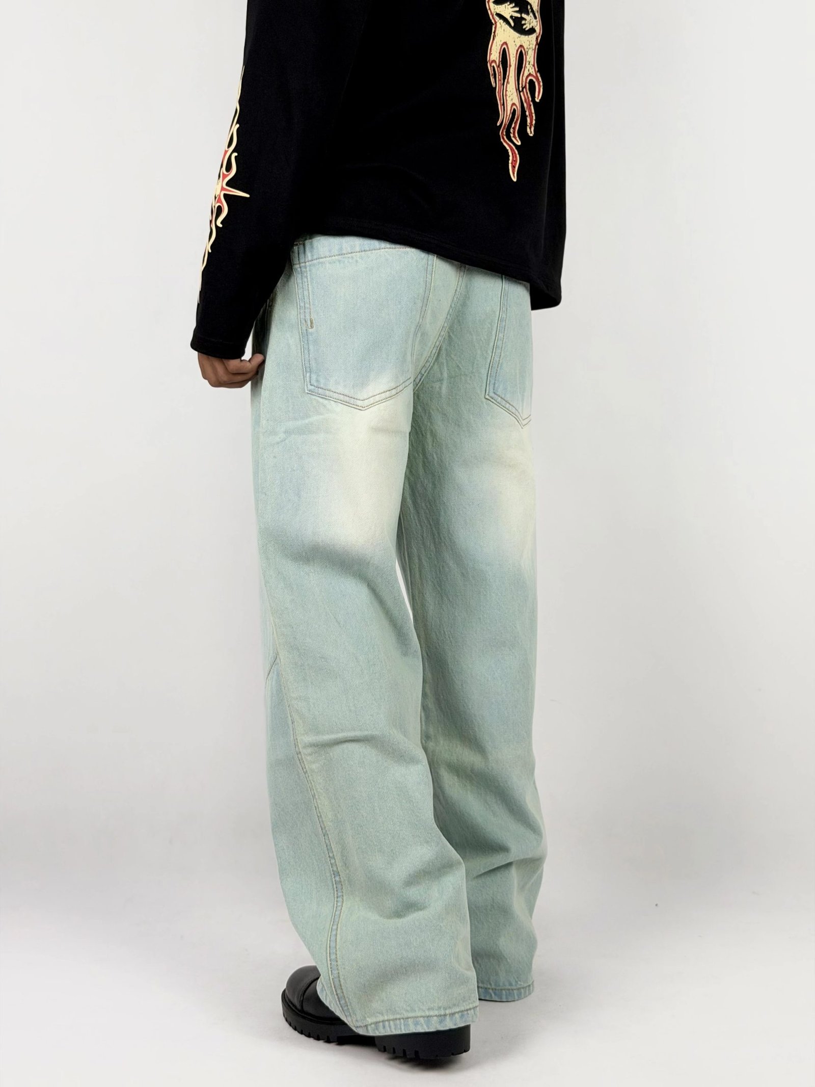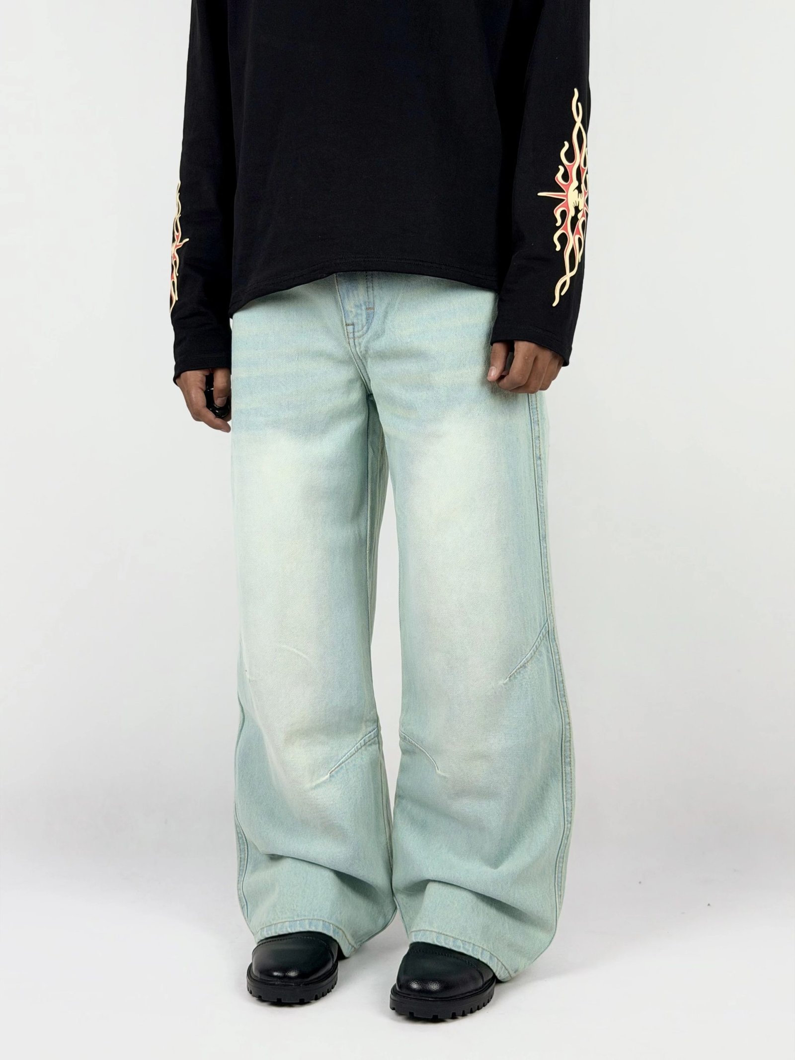 This wide-leg denim features a crisp light-blue wash that delivers a fresh, modern look with a soft worn-in feel. Designed for a relaxed fit through the leg, it offers easy movement while maintaining a clean, structured silhouette. The smooth fade and subtle detailing make it a versatile piece, perfect for everyday wear and elevated street styling.