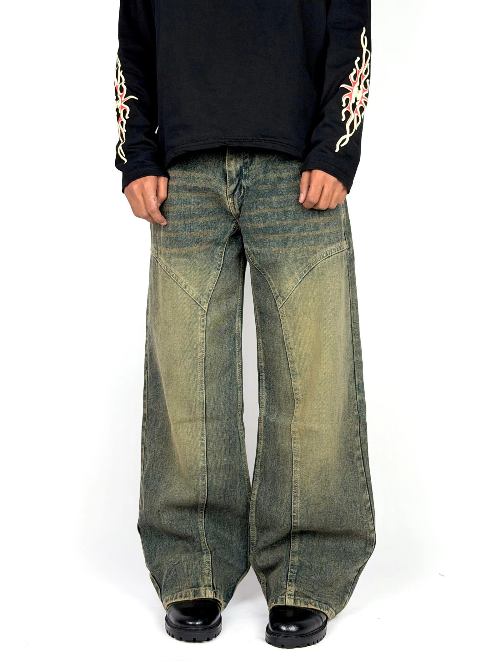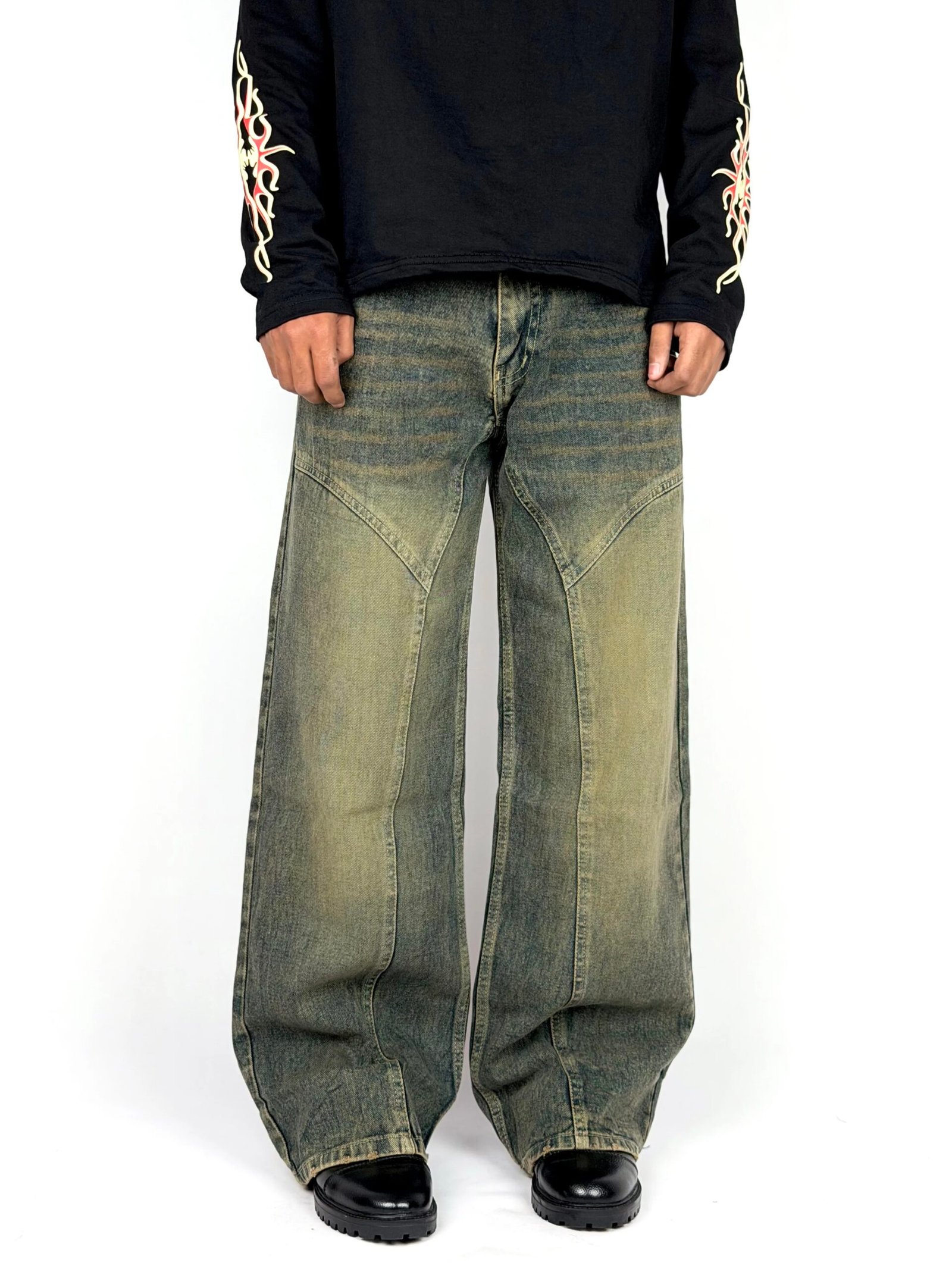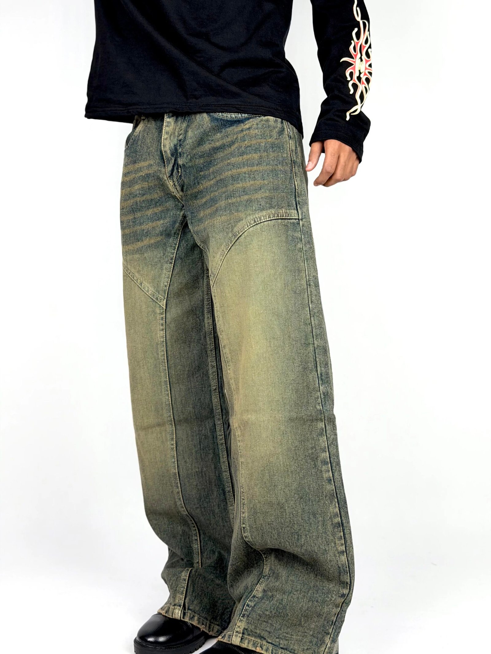 Designed to break the ordinary. The Moss Panel Baggy Denim features a distinctive olive-washed finish with contrast panel detailing and a relaxed wide-leg silhouette. Built for comfort and elevated street style, this denim delivers a bold, utility-inspired edge with everyday wearability.