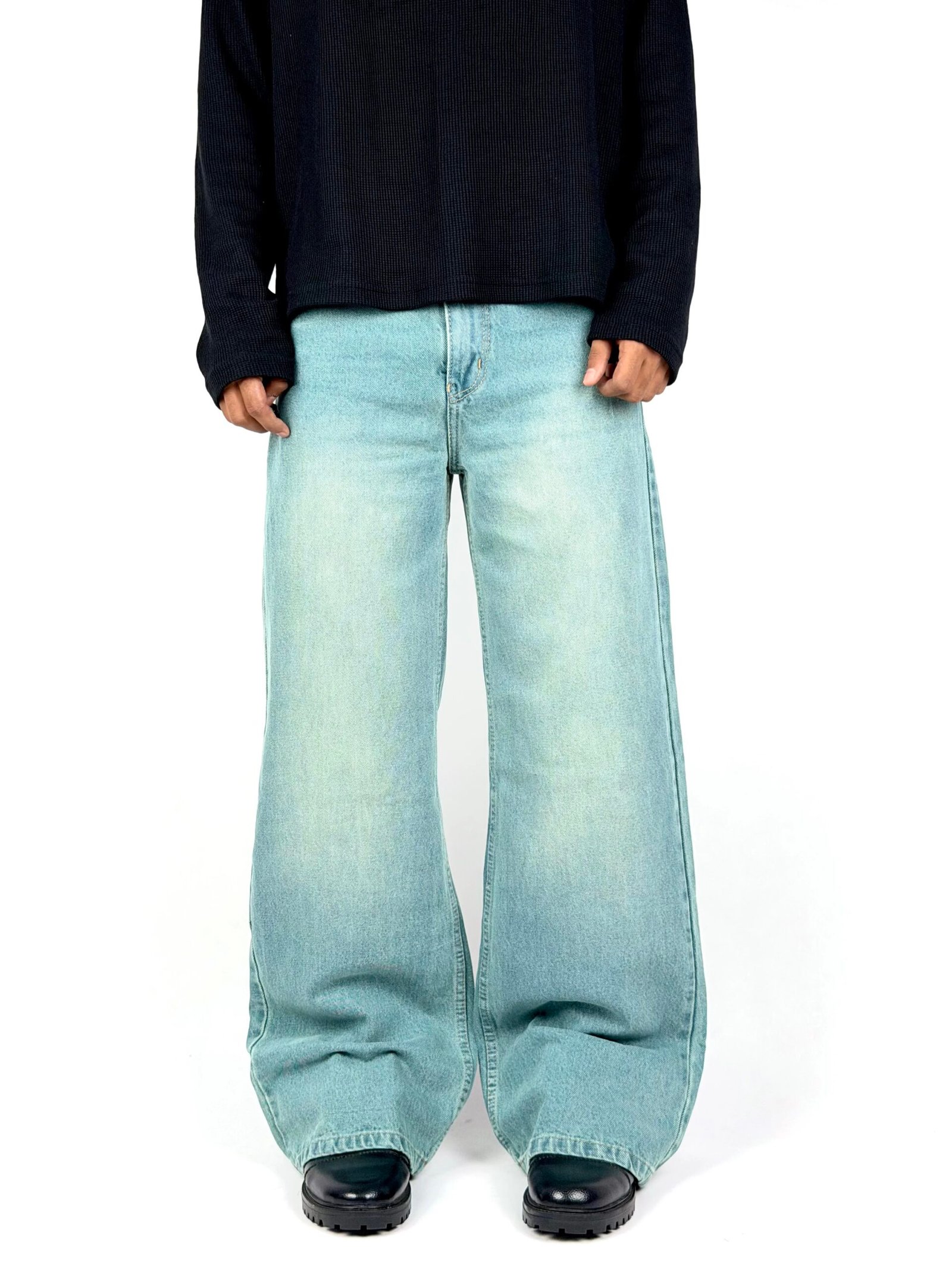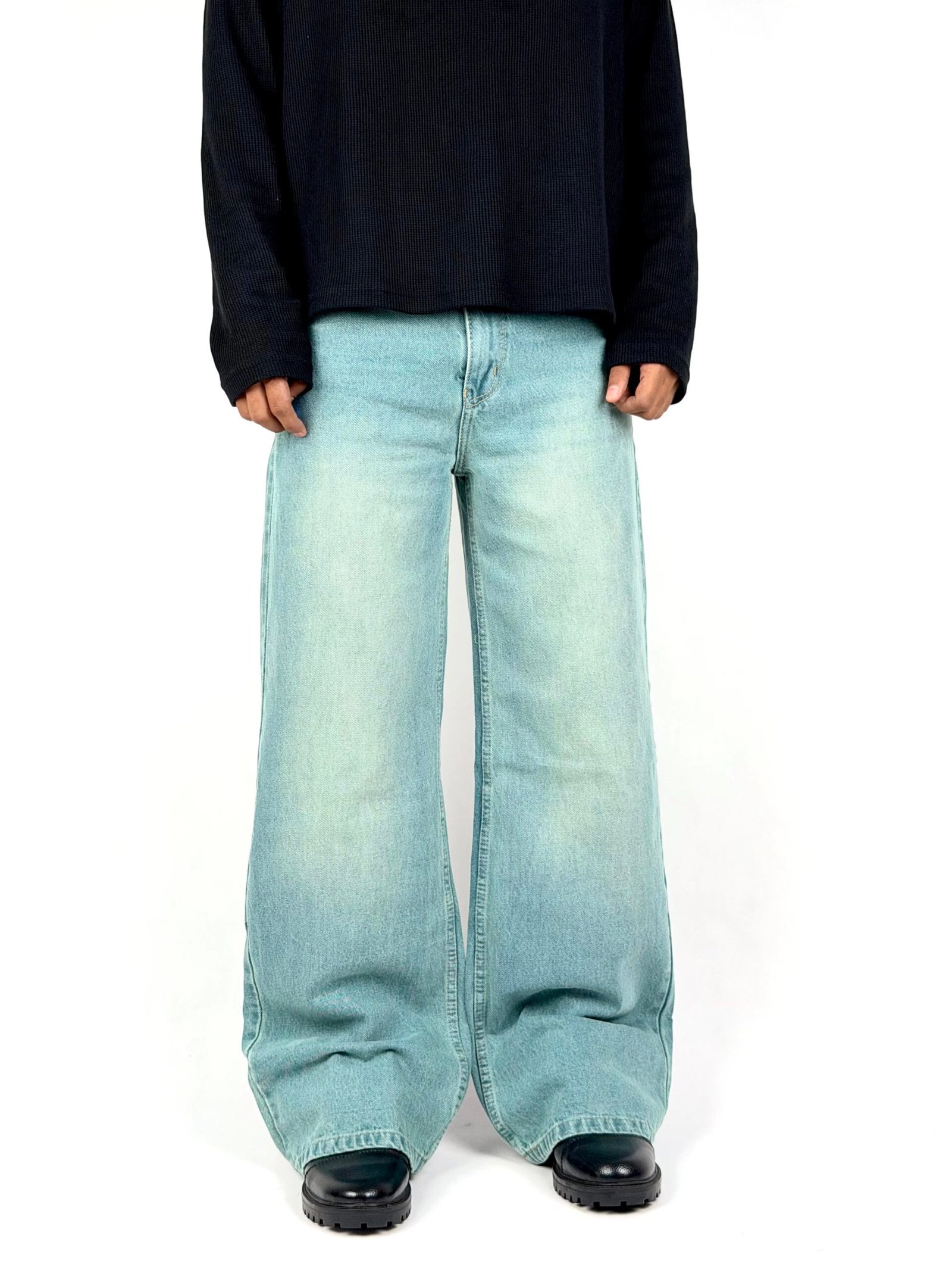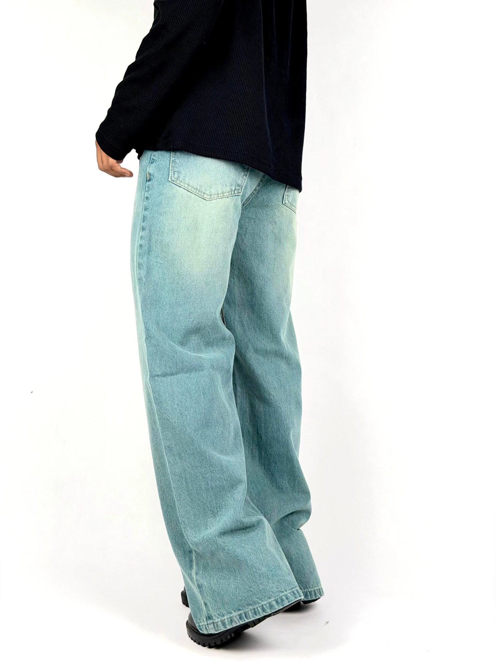 Inspired by cool ocean tones, the Sea Mist Denim features a refreshing light blue-green wash combined with a relaxed baggy fit. The wide-leg silhouette creates a clean streetwear profile while maintaining maximum comfort throughout the day. Designed to elevate casual outfits, this denim pairs effortlessly with oversized tops and sneakers, making it a versatile staple for everyday styling.