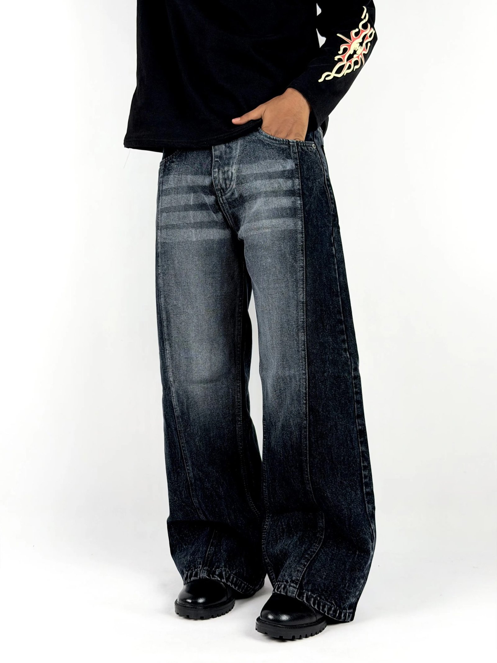Step into laid-back confidence with these wide-leg denim jeans, crafted for comfort and modern street style. Designed with a relaxed silhouette and a subtle faded wash, they offer an easy fit that moves with you. The structured seams add depth, while the flowy leg opening creates a bold yet effortless look. Perfect to pair with oversized tees, long sleeves, or layered fits—this denim is built to stand out without trying too hard.